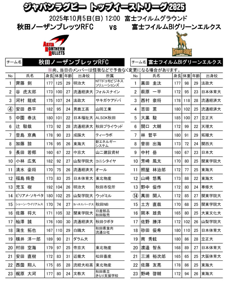 【試合結果】トップイーストリーグ 富士フイルムBIグリーンエルクス戦は14-50で敗戦